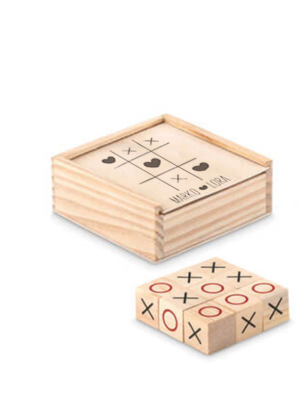 Promotivna društvena igra križić kružić u drvenoj kutiji.