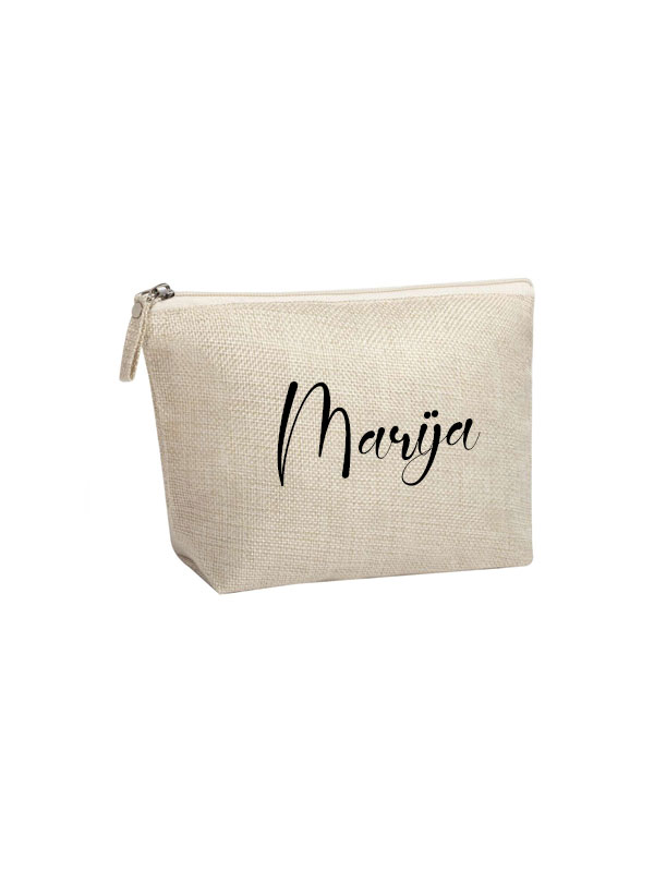Personalizirana Platnena kozmetička torba nature je savršen dodatak za vašu svakodnevnu rutinu ili za putovanje. Ova torba dolazi u prirodnoj boji i personalizacijom imena po vašoj želji.
