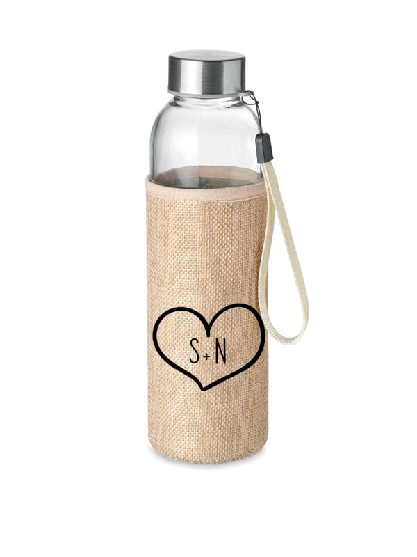 Staklena boca za vodu s navlakom od mješavine jute.