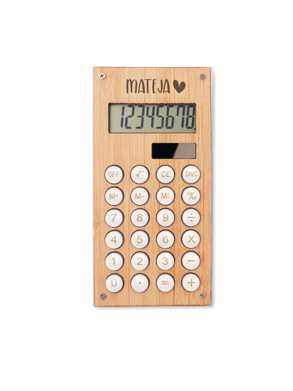 Osmeroznamenkasti kalkulator s dvostrukim napajanjem u ABS-u s bambusovim kućištem.